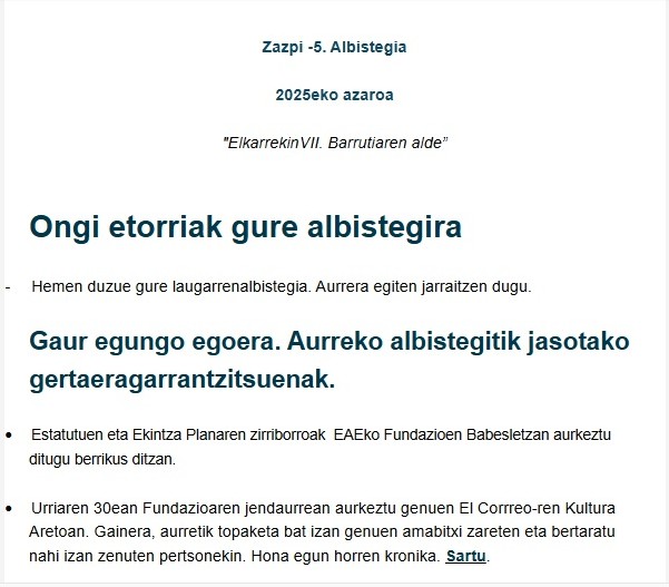 Ekainean albistegi bat idazten eta bidaltzen hasi ginen; hauxe, azarokoa, bostgarrena da.